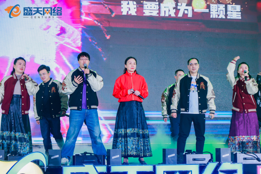 盛天网络董事长赖春临与高管团队组成年会现场靓丽的风景线!