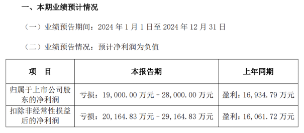 业绩层面而言,据2024年度业绩预告显示,公司预计2024年归母净利润亏损金额在1.9亿元至2.8亿元,扣非净利润亏损金额在2.02亿元至2.92亿元,同比均由盈转亏。