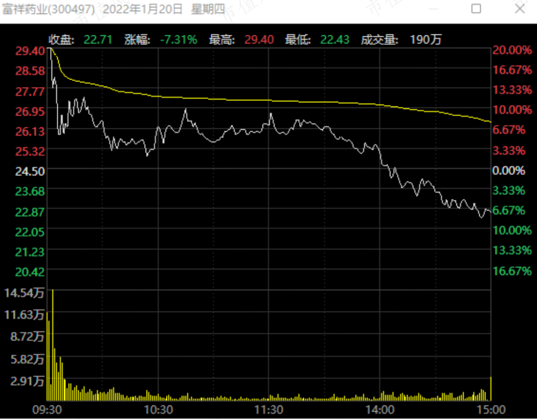 这是妥妥地业绩暴雷啊!这也直接导致富祥药业股价在1月25日继续重挫13.97%。