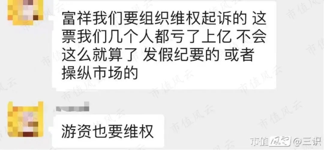 在市值风云APP上,甚至有人晒出游资大佬的聊天截图,表示几个人都亏了上亿,游资也要维权。