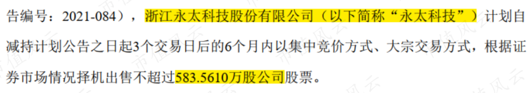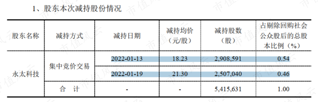 本轮暴涨启动前1个月,永太科技提前公布了减持公告,并分别在1月13日持续上涨及1月19日涨停当天成功减持,累计套现1.06亿。