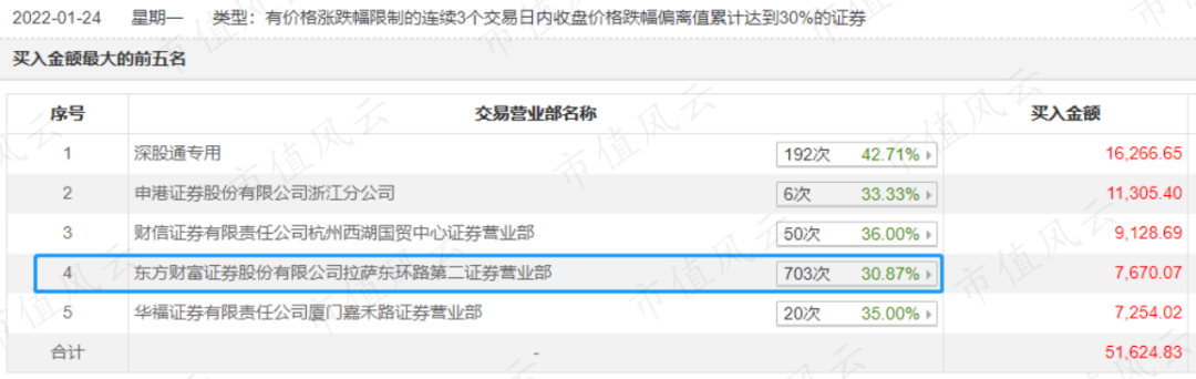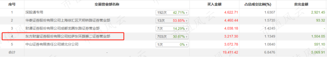 值得一提的是,这里面首次出现了东方财富拉萨东环路第二证券营业部的身影,而且还是两次。