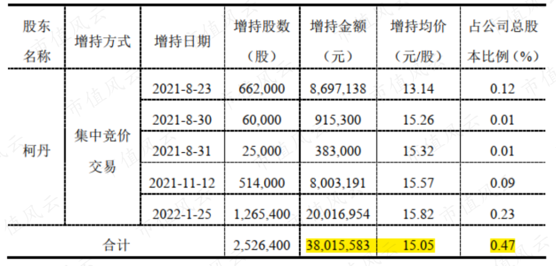 就是在业绩暴雷导致股价继续大跌的1月25日,公司实控人包建华的妻子柯丹大笔增持了2亿元的公司股票,来履行其增持承诺,当日增持金额占其累计增持金额的53%。