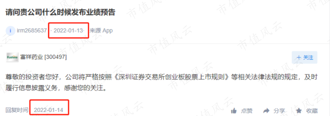 而早在1月13日股价上涨期间,就有投资者在互动易平台询问什么时候发布业绩预告,董秘当时的回答是及时。