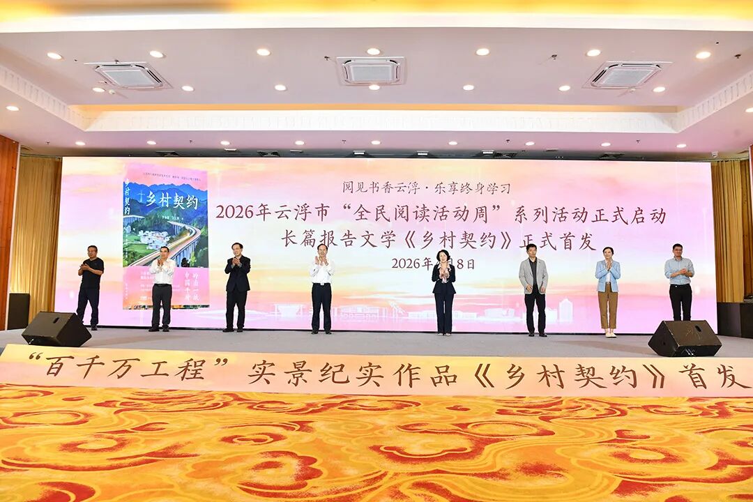 4月8日,2026年云浮市“全民阅读活动周”系列活动启动仪式暨长篇报告文学《乡村契约》首发式在云浮举办。这场由广东省作家协会、云浮市委宣传部、花城出版社联合主办的活动,汇聚了文学界、学术界、企业界代表和媒体人士等约120人,共同见证这部传扬新时代“契约精神”的文学新作正式面世。
