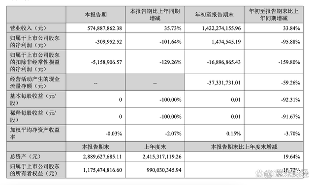 三季度报显示,前三季度公司营收14.22亿,同比增加33.84%,归属于上市公司股东的净利润147.45万元,同比减少95.88%。第三季度营收5.75亿,同比增加35.73%,归属于上市公司股东的净利润-31万,同比减少101.64%。