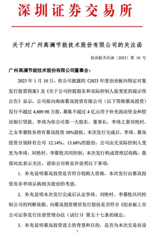 监管同样聚焦这一问题。1月12日,深交所下发问询函,要求高澜股份说明慕岚投资是否符合收购人资格,本次发行由慕岚投资而非李琦认购相关股份的考虑。