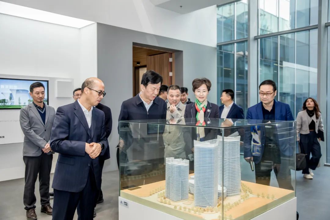 走访中沈觅书记、邹小伟副主任一行参观了启迪设计集团新总部大楼——绿色健康智慧的高品质示范项目,听取了大楼的设计创新理念、绿色低碳技术及历史文化传承等方面的介绍。