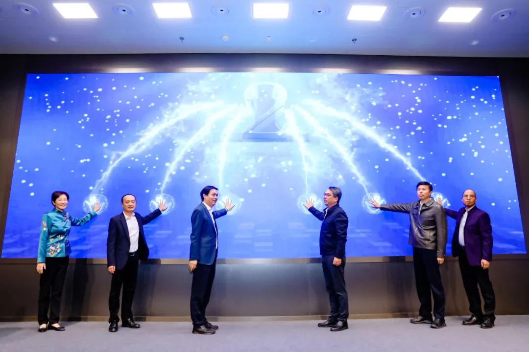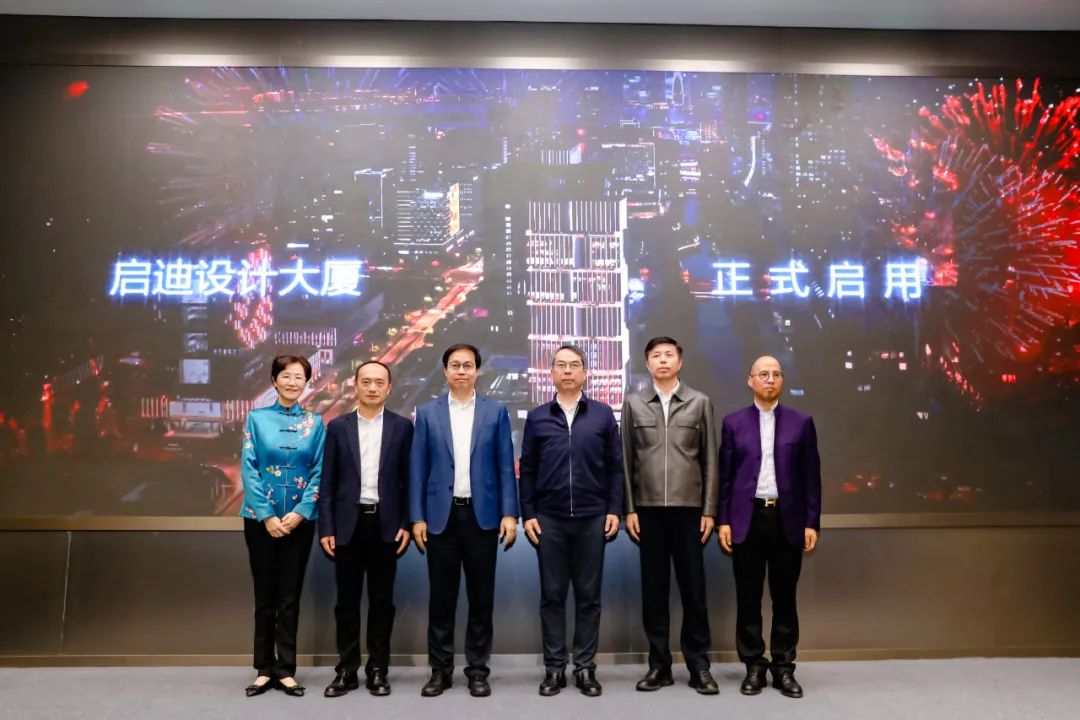 施嘉泓副市长、莫栋升局长、王晓东局长、卫严主任、戴雅萍董事长、查金荣总裁共同点亮启迪设计大厦