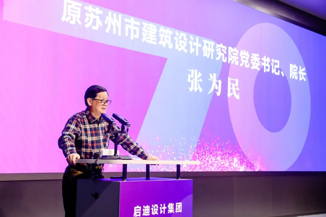 70年来启迪设计人薪火相传,老一辈设计师敬业奉献、以身作则,培养出了一代代追梦不止、筑梦不息的青年才俊。本次活动邀请了公司老前辈代表——原苏州市建筑设计研究院党委书记、院长张为民,以及青年员工代表合一工作室主任张筠之分别发表感言。