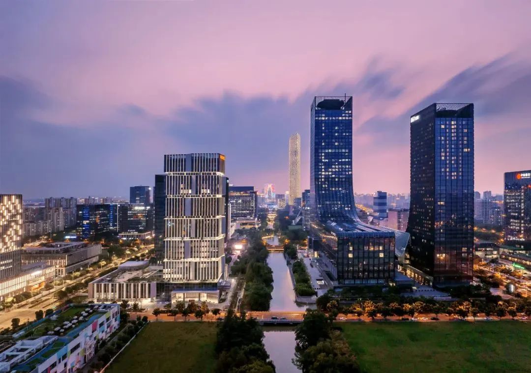 这座建筑的外幕墙仿佛是一面映射苏州传统文化与现代科技交融的镜子,它从中国的传统艺术元素中汲取灵感,将山水画、园林景致的精髓融入建筑造型中。高透光玻璃与金属材质的巧妙运用,使得建筑在阳光下熠熠生辉,犹如一幅苏州园林景致的生动画面。