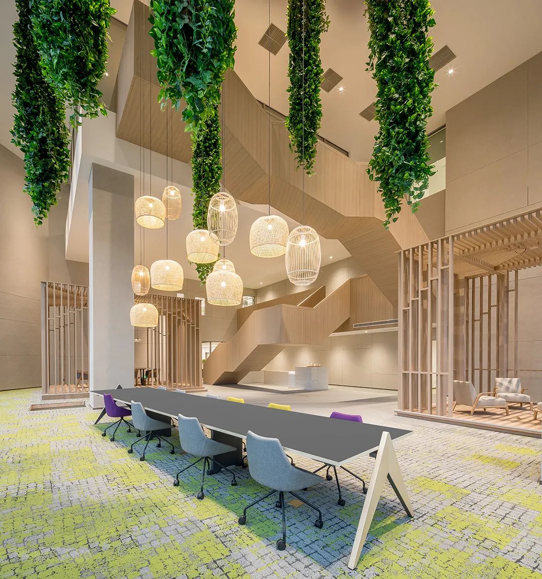 启迪设计大厦一层大堂,是倾心打造的艺术空间,它融合了苏州园林景致与现代元素,为每一位来访者呈现出一场别样的视觉盛宴。步入其中,仿佛踏入了一个充满艺术与创意的世界,让人深深感受到苏州文化的深厚底蕴和独特魅力。