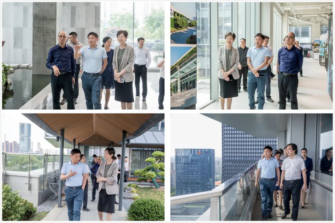 考察期间,段林董事长一行在戴雅萍董事长等陪同下参观了启迪设计成立七十年成果展以及新总部大楼——绿色健康智慧的高品质示范项目,听取了大楼的设计创新理念、绿色低碳技术及历史文化传承等方面的介绍。同圆设计集团的领导专家对启迪设计在绿色设计、智慧运营等方面的技术研究经验与实践应用成果给予高度肯定。