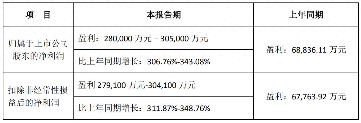 1月20日晚,新易盛发布2024年业绩预告,预告显示,预计报告期内公司实现净利润为28亿元至30.5亿元,同比增长307%至343%;预计扣非净利润为27.91亿元至30.41亿元,同比增长311.87%至348.76%。