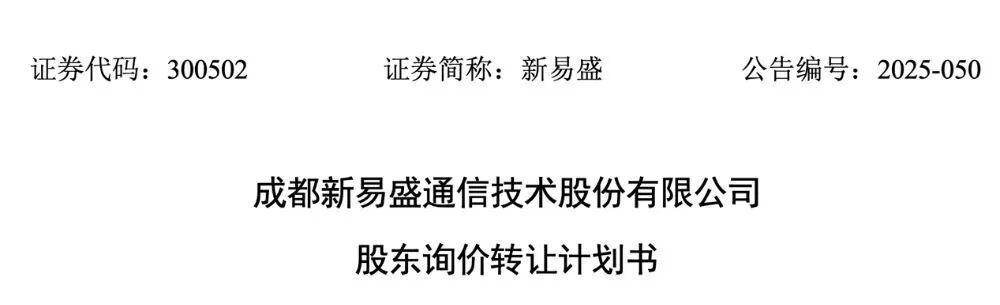 日前,光模块上市公司新易盛公告了《股东询价转让计划书》。