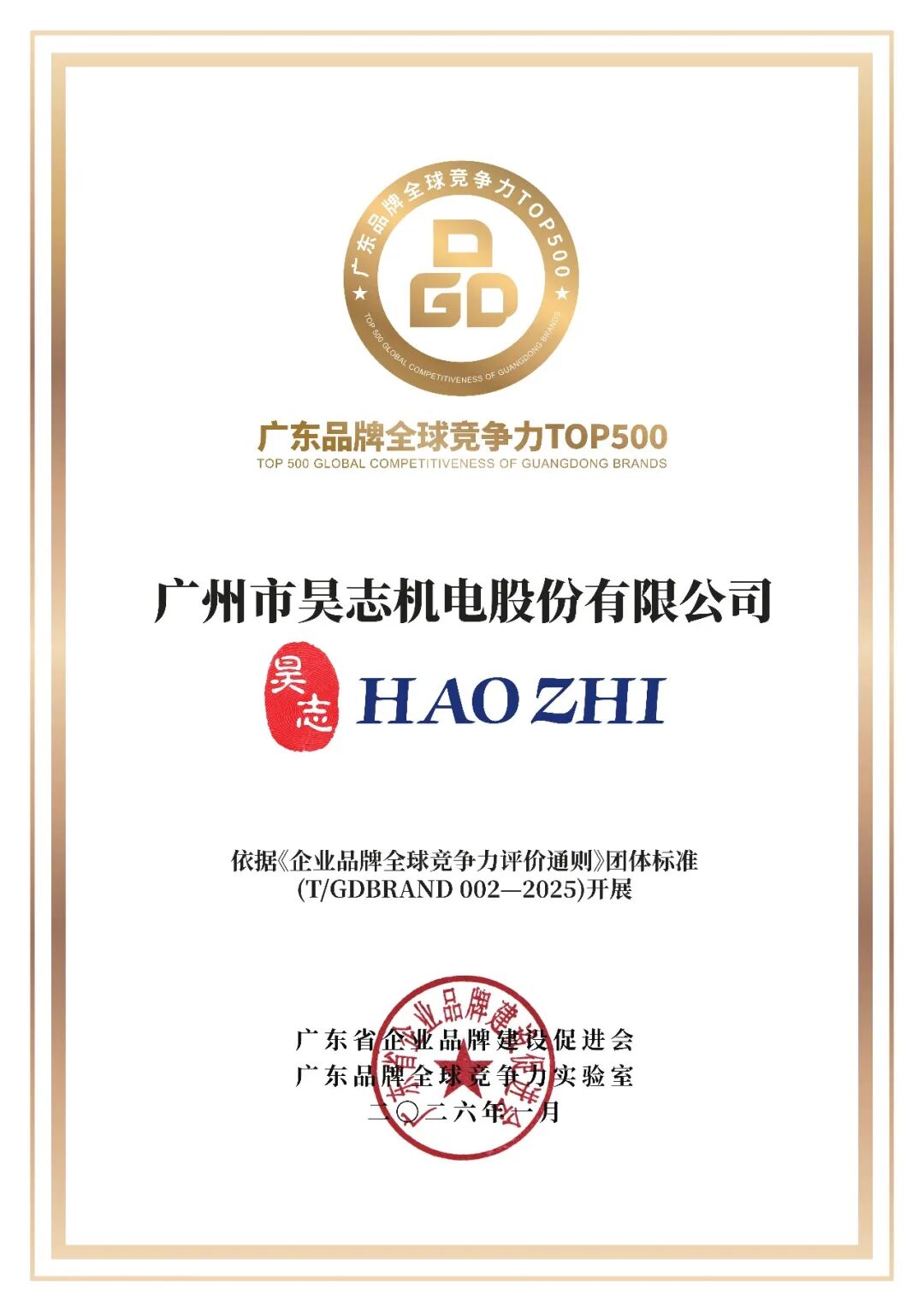 近日,“2025广东品牌全球竞争力500强”名单正式揭晓,昊志机电与华为、腾讯、比亚迪、华润、广药、美的、大疆、格力、广汽、中兴、广州酒家、TCL、立白、富士康等领军企业共同入选。此次入选,是对昊志机电品牌价值与全球竞争力的高度认可,标志着企业已成为中国品牌出海、参与全球竞争的重要力量。
