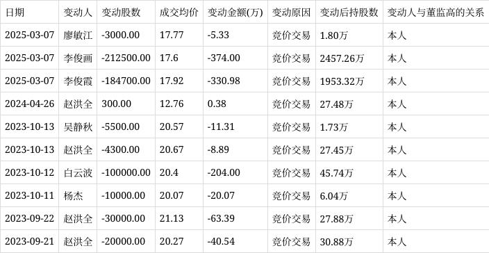 深交所公开信息显示,3月7日,天邑股份董事李俊霞在竞价交易公司股票,减持股数18.47万股,成交均价17.92元,变动金额330.98万元,变动后持股数为1953.32万股。