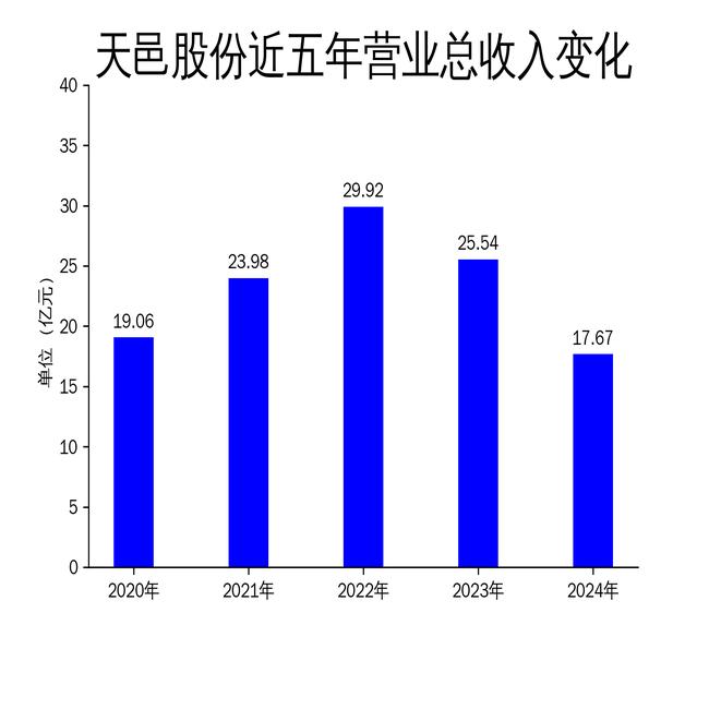 2025年4月20日,天邑股份发布2024年年报。报告显示,公司2024年实现营业总收入17.67亿元,同比下降30.81%;归属净利润为-0.26亿元,同比下降126.24%;扣非净利润为-2784.92万元,同比下降129.60%。这是公司近年来首次出现净利润亏损,且各项财务指标均呈现大幅下滑趋势。