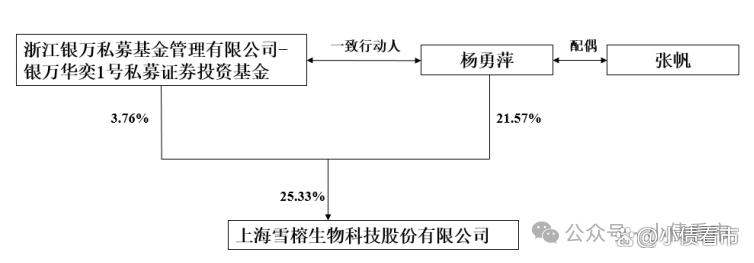 从股权结构看,雪榕生物控股股东是杨勇萍,持股比例为21.57%,公司实际控制人为杨勇萍、张帆夫妇。