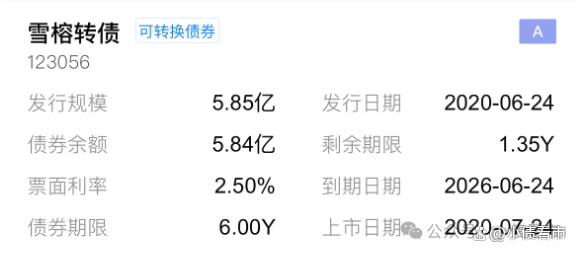 《小债看市》统计,目前雪榕生物仅存续“雪榕转债”,债券余额5.84亿元,将于2026年6月到期。