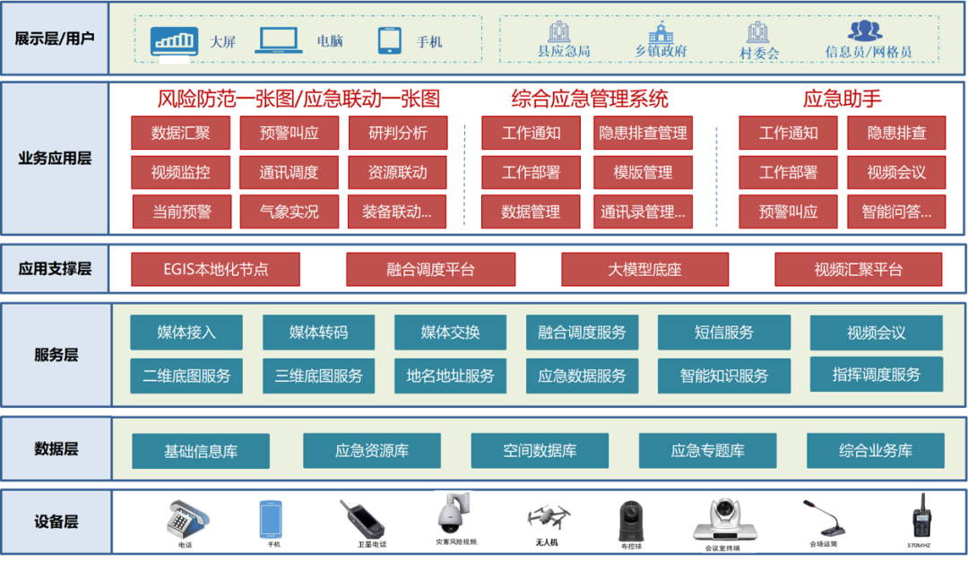 辰安科技紧密围绕区县应急局、乡镇政府用户的实际需求,创新研发应急联动一体机与三联屏指挥箱,形成软硬一体化智能装备解决方案。该套产品具备高集成融合能力,涵盖视频汇聚、融合通信、EGIS服务、大模型底座、服务器资源五大底层能力,通过基层应急系统为用户提供全方位业务支持,助力解决“数据有填报,无留存;视频在身边,看不到;有人员设备,调不到;统建系统多,不好用”等四大核心痛点问题。