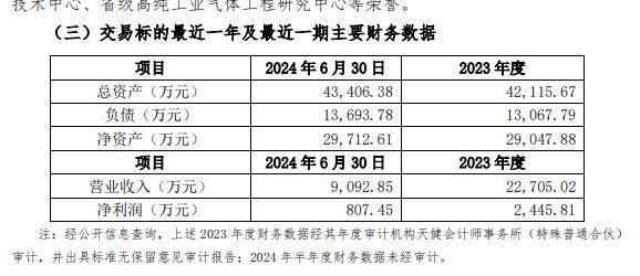 据蜀道装备公告,在业绩方面,科益气体2023年营业收入达到2.27亿元,净利润为2441万元。2024年上半年,其营业总收入为9092.85万元,净利润为807.45万元。
