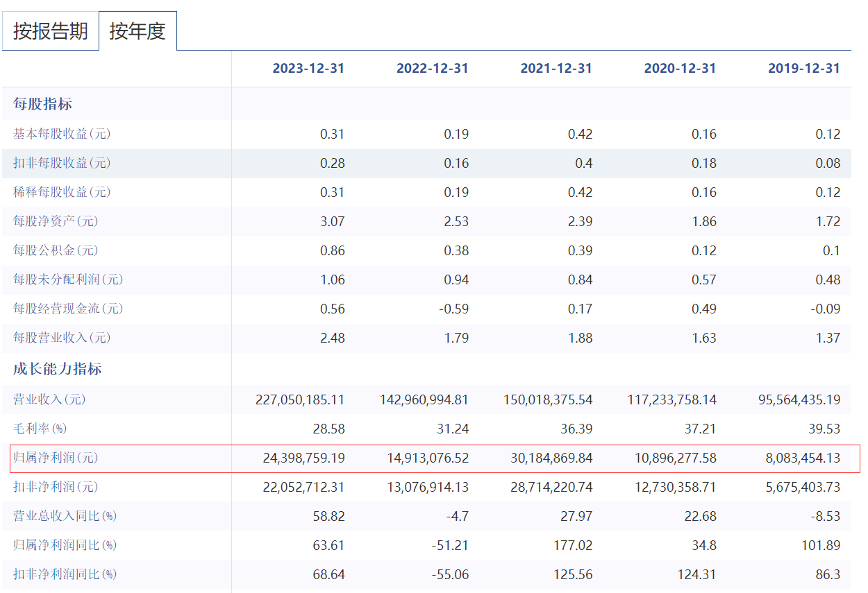 科益气体历史业绩(图中所示为归母净利润,故与净利润数值略有不同)图片来源:东方财富截图