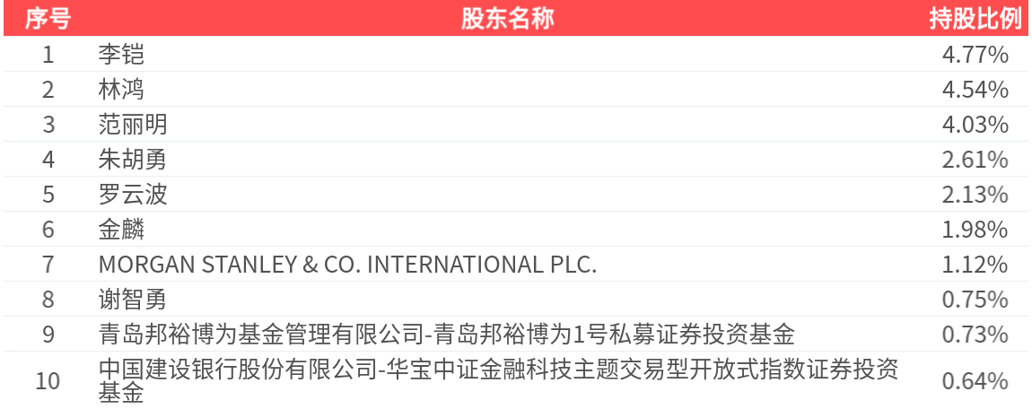 公司股东户数为5.09万户,前十大股东持股数量为1.00亿股,占总股本比例为23.30%,前十大股东持股情况如下: