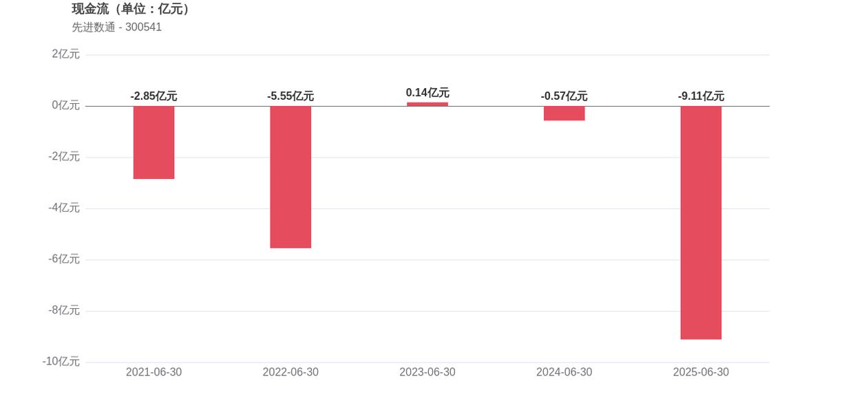 在经营稳健性方面,先进数通面临一定挑战,存货周转天数为193.86天,较2024年上半年增长了29.12%,表明存货管理效率有所下降。经营活动产生的现金流净额为-9.11亿元,2024年同期为-0.57亿元,现金流状况恶化。此外,2025年上半年的资产负债率为46.58%,同比增长了8.71个百分点,这意味着公司债务负担有所加重。