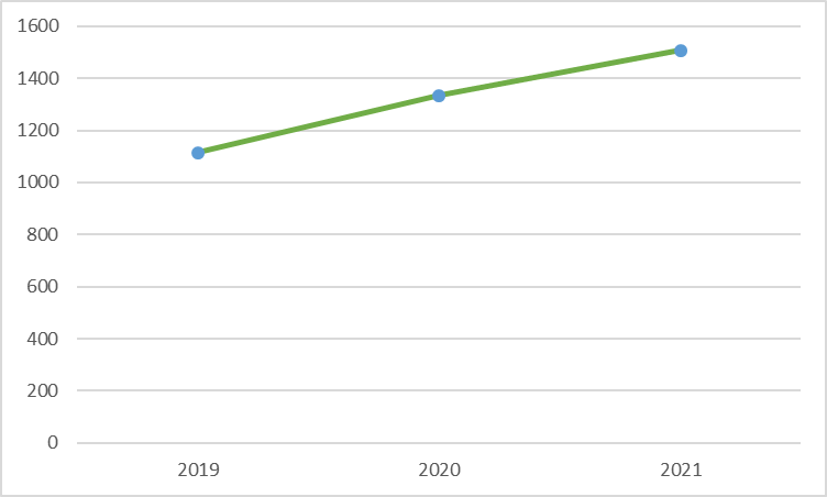 图3 万集科技2019年-2021年员工规模(人)