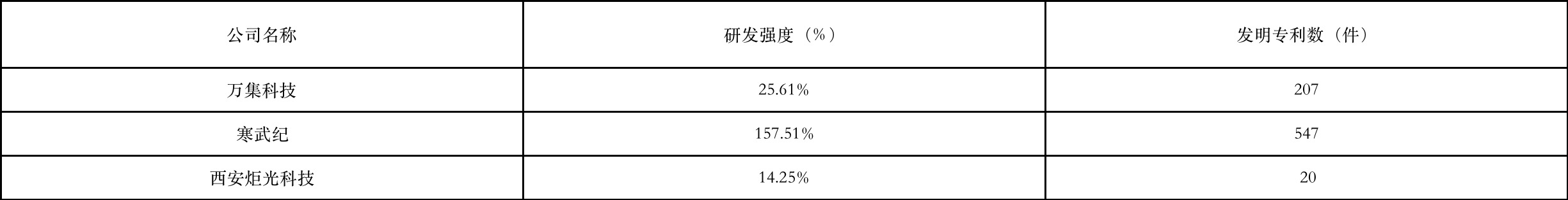 近年,为寻求战略转型,在激光雷达、智能网联、汽车电子方面寻求新的突破,公司持续加大研发投入,2021年度研发费用2.34亿元,较2020年度增加8141.90万元,同比增长53.03%。但在研发强度方面,即研发投入占比营业收入比例,为25.61%,与寒武纪仍然具有较大差距,且发明专利数也远低于寒武纪,但研发强度也并非越大越好,还需谨防出现寒武纪研发投入与盈利无法平衡的困境。虽然万集科技在智能交通行业的长期耕耘给企业带来了巨大优势,但作为技术密集型企业,技术创新仍然是该行业的制胜法宝。因此,万集科技如果想继续保持在该领域的市场优势,仍需在研发投入方面付出更多的努力。