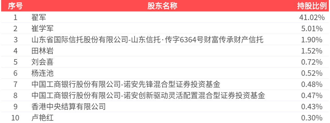 公司股东户数为3.01万户,前十大股东持股数量为1.12亿股,占总股本比例为52.38%,前十大股东持股情况如下: