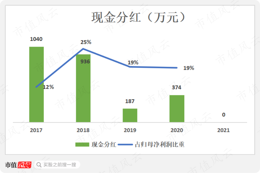 上市以来公司分红金额持续下滑,但每年能维持一定分红比例,2021年由于亏损不进行利润分配。
