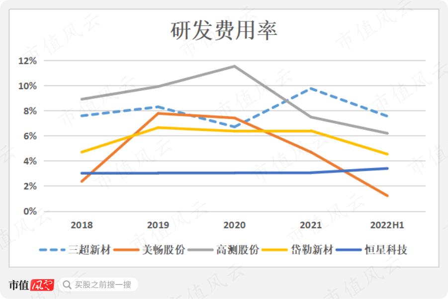 因此行业内公司客户集中度普遍偏高,2022H1三超新材前五大客户集中度达57%。