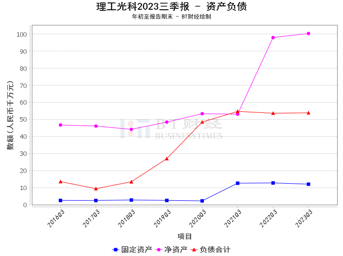 根据其2023年三季报,理工光科的资产总计为15.42亿元,相比上年度末的15.92亿元有所减少。负债合计为5.39亿元,较上年度末的6.03亿元也有所下降。净资产为10.04亿元,略高于上年度末的9.89亿元。资产负债率为34.93%,较上年度末的37.86%有所下降,显示出公司负债水平的降低。