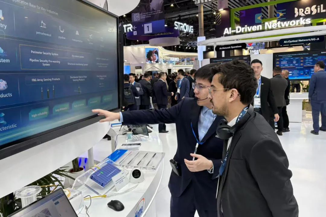 理工光科此次携通感一体化“光纤传感+”系列解决方案参展,围绕“智慧安防、智慧管线、智慧结构、火灾报警”四大核心板块展开应用,通过将光纤传感与物联网技术深度融合,实现了对温度、应变、振动等多种物理参量的实时监测,充分展示了公司在光纤传感技术领域的创新能力。光纤传感技术以其高精度、高灵敏度、抗电磁干扰、长距离传输等优势,近年来在能源、交通、安防等多个领域得到了广泛应用,为行业数字化转型提供了全新的感知能力。