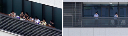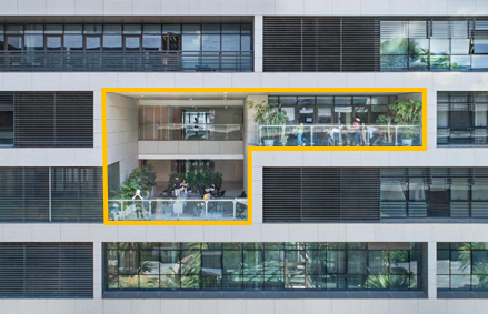 错落的屋顶激活了更多办公空间的可能,为使用者提供了附加值。建筑中的场所不仅被办公人群使用,还有许多公司在露台、庭院、大堂组织团建等活动,人们在这里健身、电话会议、甚至可以根据自己的喜好培育植物。这些场所的打造,令泰然大厦带给人们独特的记忆。