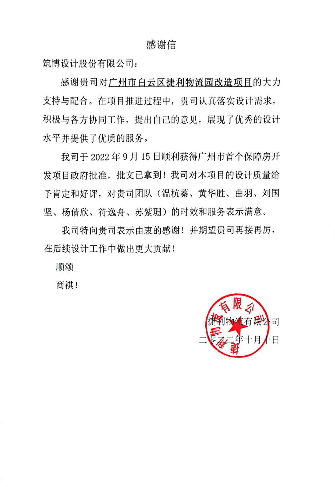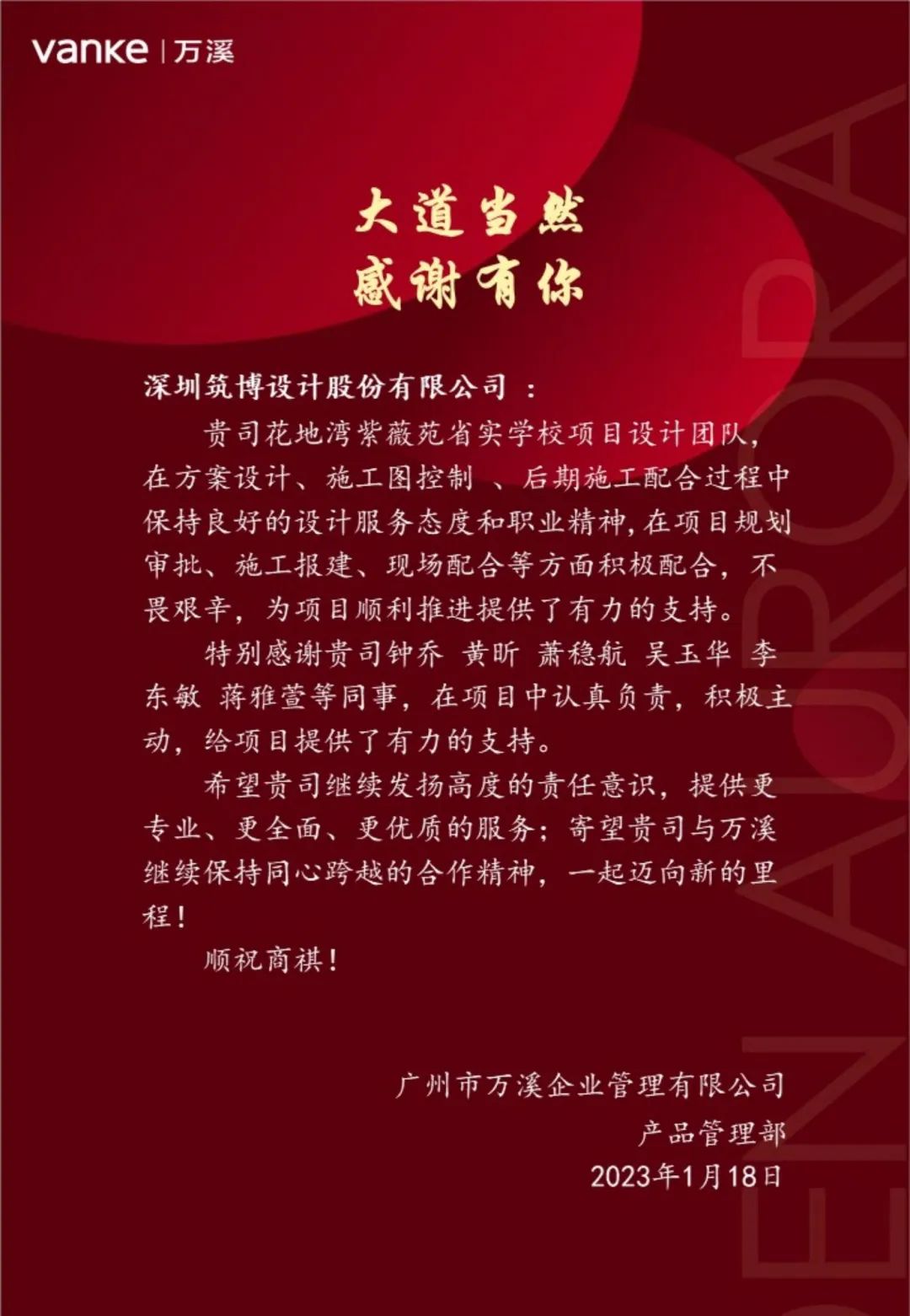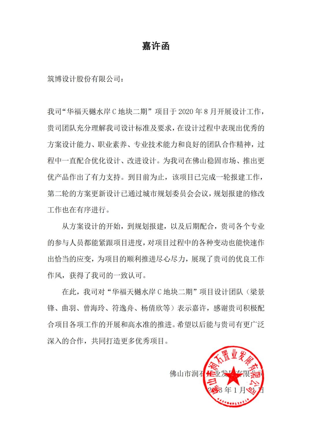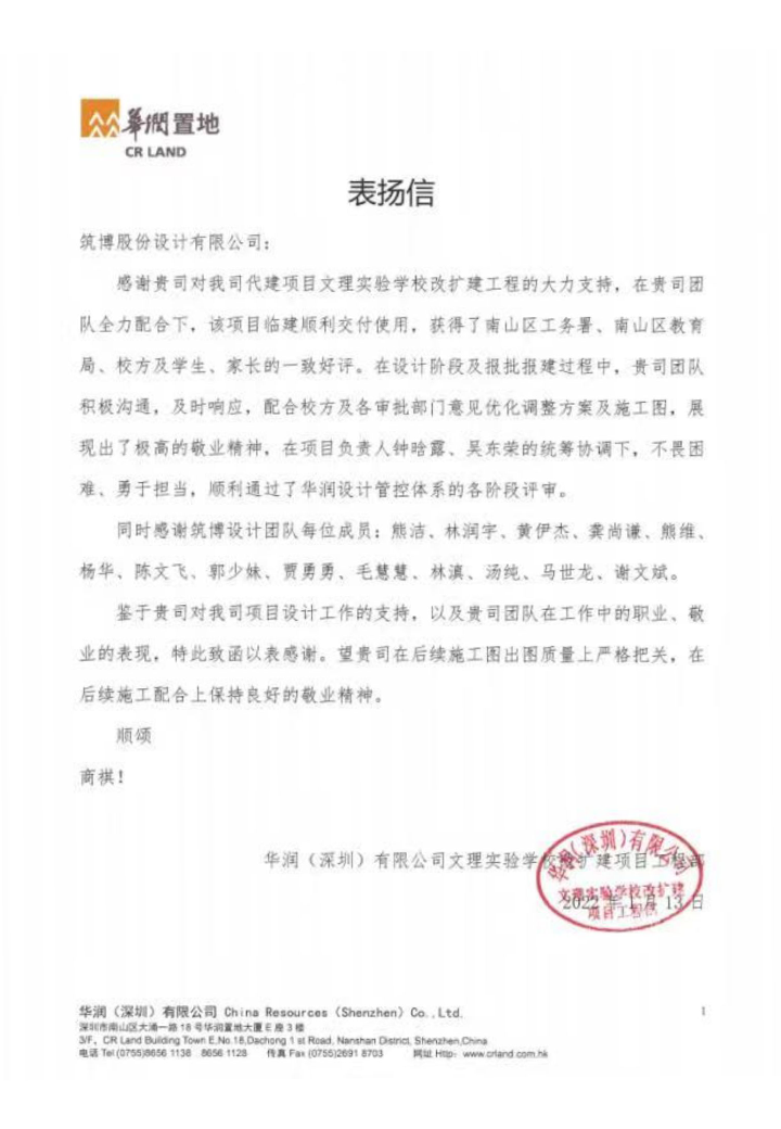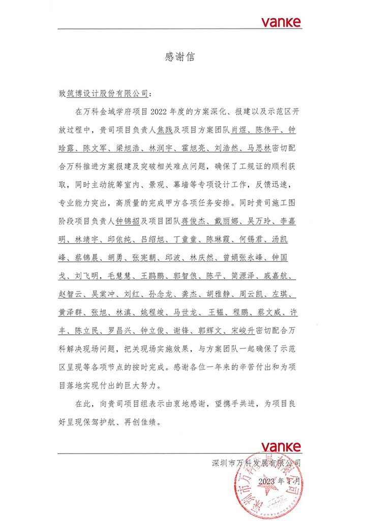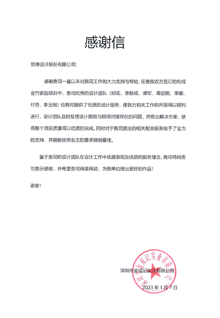 △筑博设计(深圳)有限公司联合公设感谢信
