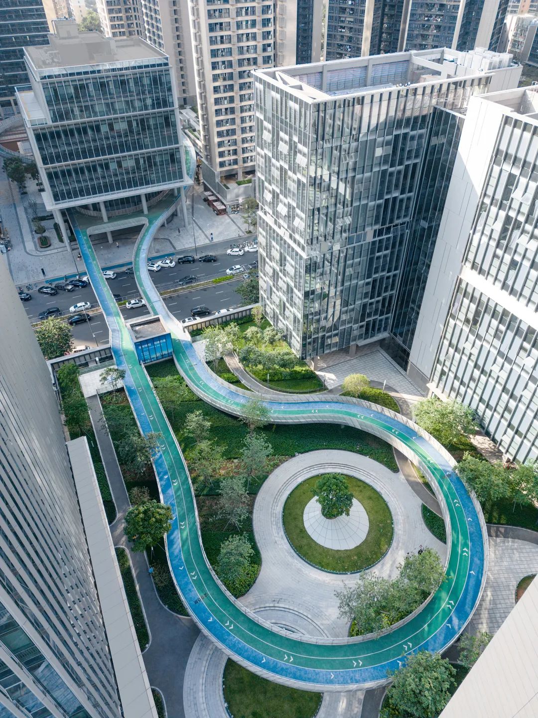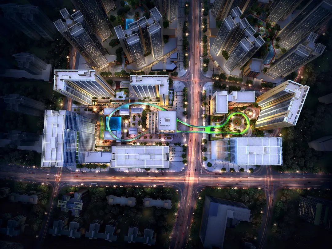 方案提出“复合社区”——面向城市、共荣共生的规划策略。社区并不是城市的孤岛,而是城市的有机组成部分。我们把规划设计的视野从社区内部延伸到社区外部,不仅仅关注社区的需要,也关注城市的需求。公建地块以运动为主题,园区中心建立运动公园串联办公、商业、公寓等开放的人流,形成社区的活力引擎,与北侧学校配套形成两个公共活力节点拉动整个片区的城市活力。