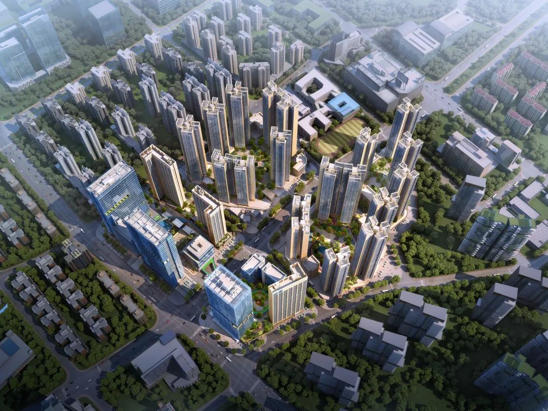 项目坐落在深圳市宝安区沙井新桥街道,是六个地块合并开发的城市更新项目。南侧两个公建地块,北侧三个住宅地块与一个学校地块构建了完整的社区级配套体系。