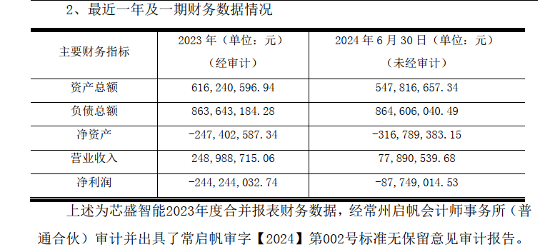 从业绩来看,芯盛智能去年全年营收为2.49亿元,净利润亏损2.44亿元;今年上半年,芯盛智能营收为7789万元,净利润亏损8775万元。