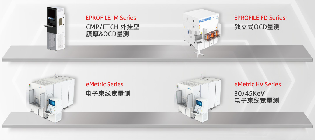 关键尺寸量测设备系列(EPOFILE/ eMetric Series)光学关键尺寸量测设备深度融合光学干涉技术、椭偏光谱技术与智能建模算法等,可精准监测栅极宽度、侧壁倾角、光刻胶/硬掩模层高等关键工艺参数。电子束关键尺寸量测设备具备百兆赫兹级高速高通量电子束图像采集速度、高速高精度高可靠性的实时自动聚焦能力,满足从微米小视场到百微米级大视场的截然不同的量测需求。