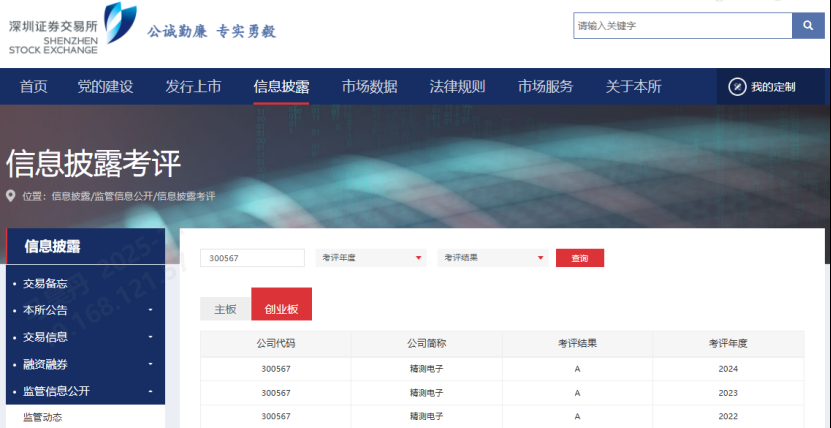 信息披露考核是深交所衡量上市公司透明度与规范运作水平的“年度大考”,考核维度涵盖信息披露质量、规范运作、投资者关系管理、社会责任披露等核心指标。在沪、深、北三大交易所数千家参与考核的上市公司中,能够连续三年斩获A级者凤毛麟角,精测电子正是其中的佼佼者。