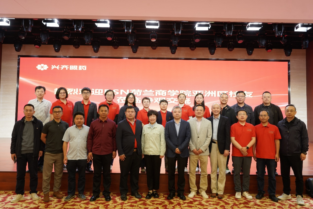 5月26日,BSN荷兰商学院董事韩兵,中国经济研究院院长、经济学家高连奎率领访学团一行20余人,在沈阳市高企协会副秘书长张瑞陪同下莅临兴齐眼药参观交流。公司副董事长张少尧,党委书记、总经理高峨等相关负责人陪同考察。