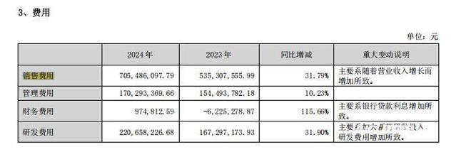 此外,报告期内,公司各项增长的费用也引得外界关注。其中,增幅较大的为财务费用,较2023年同比增加了115.66%。公司对此解释系因银行贷款利息增加所致。
