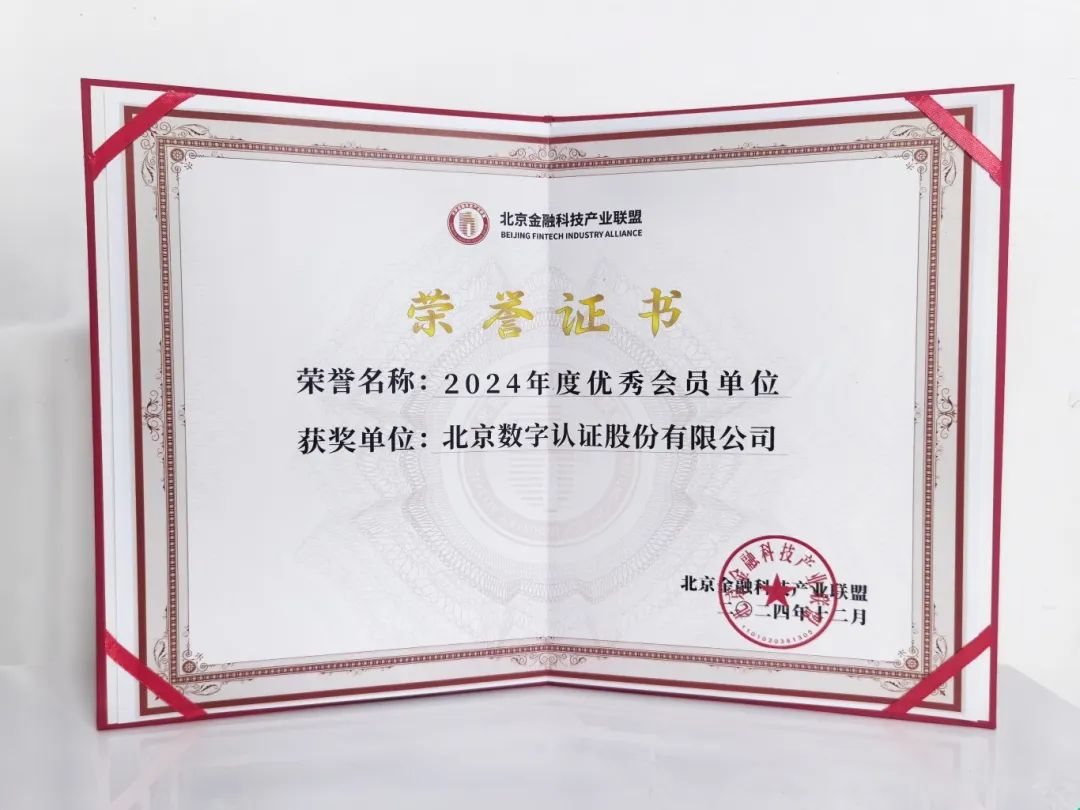 近日,北京金融科技产业联盟2024年度会员代表大会在京召开。会议同期,联盟对通过年度工作考核的优秀会员单位进行了表彰。北京数字认证股份有限公司(简称:数字认证)凭借本年度金融科技方向课题攻关、研究支撑等方面的工作成果,获评“2024年度优秀会员单位”荣誉称号。