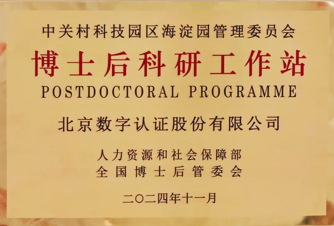 近日,北京市人社局举办“加强博士后人才培养,赋能中国式现代化建设”大会,会上为今年新设站的124家博士后单位授牌。北京数字认证股份有限公司(简称“数字认证”)获准设立园区类博士后科研工作站,成为此次新授牌单位之一。