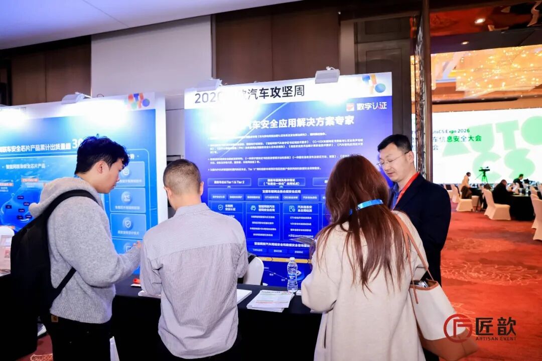 2026年3月26-27日,“The ArtiAuto Week 2026匠歆汽车攻坚周”在上海隆重拉开序幕。活动期间,第九届AutoCs Expo 2026智能汽车信息安全大会暨展览会盛大召开,凭借在智能汽车信息安全领域的出色表现,北京数字认证股份有限公司获大会组委会颁发“2026年度优秀汽车信息安全产品提供商”奖项。数字认证车联网信息安全专家王浩溟也受邀出席,发表“基于密码技术的智能网联汽车安全解决方案”主题演讲。
