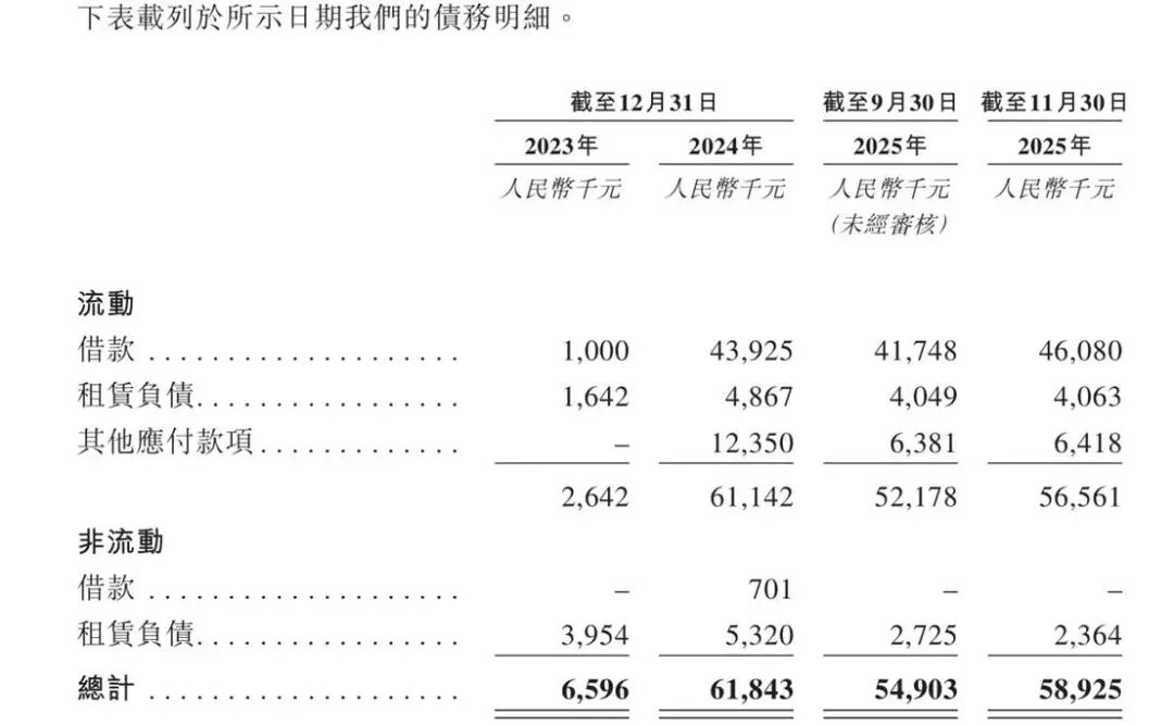 2024年,贝斯特新材料的借款出现大幅增长,由2023年末的100万元增至2024年末的4464.6万元,至2025年11月末进一步增至4608万元。公司于2025年11月末的借款均是流动负债。