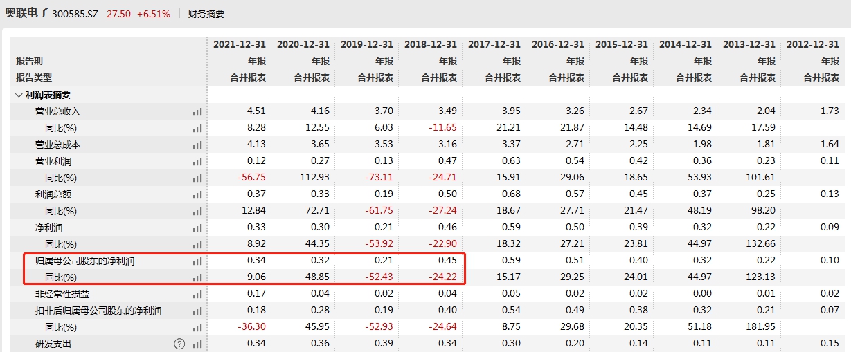 二级市场上,截至1月12日收盘,奥联电子涨6.51%报27.5元/股,总市值47亿元。
